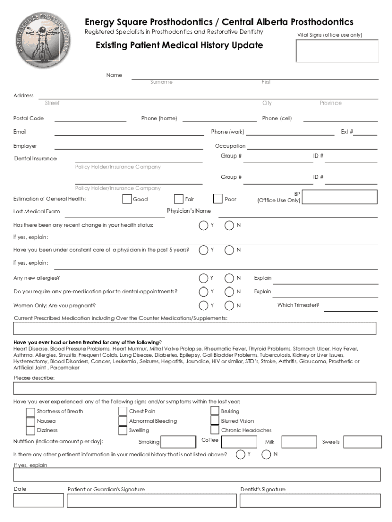 Registered Specialists in Prosthodontist and Restorative DentistryVital Signs (office use only)Existing Patient Medical History Update