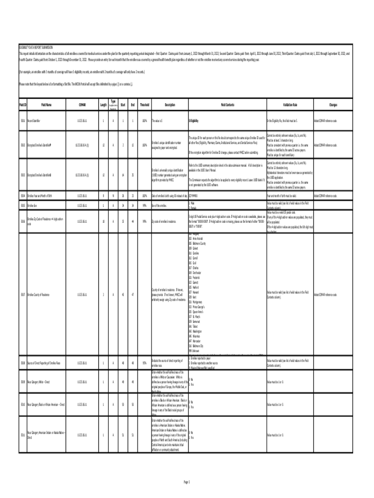 ELIGIBILITY DATA REPORT SUBMISSION This report details information on the characteristics of all enrolled covered for medical services under the plan for the quarterly reporting period designated