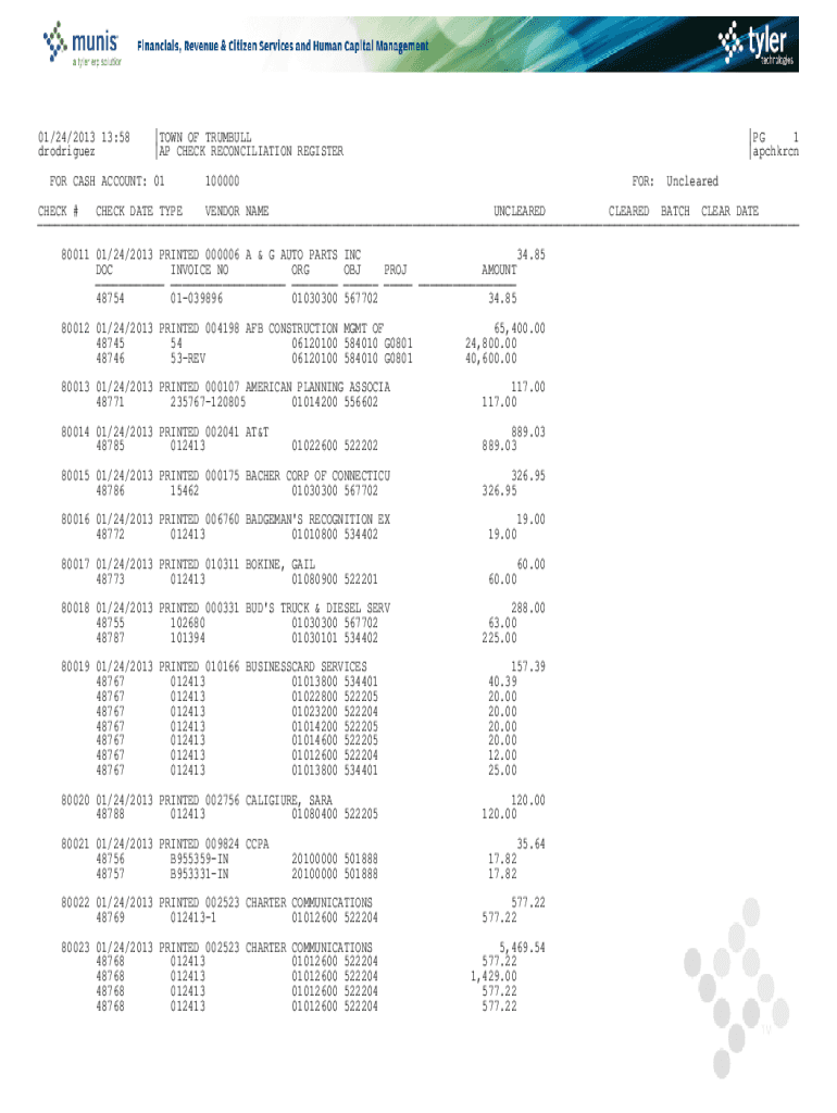 |AP CHECK RECONCILIATION REGISTERED CASH ACCOUNT: 01|PG