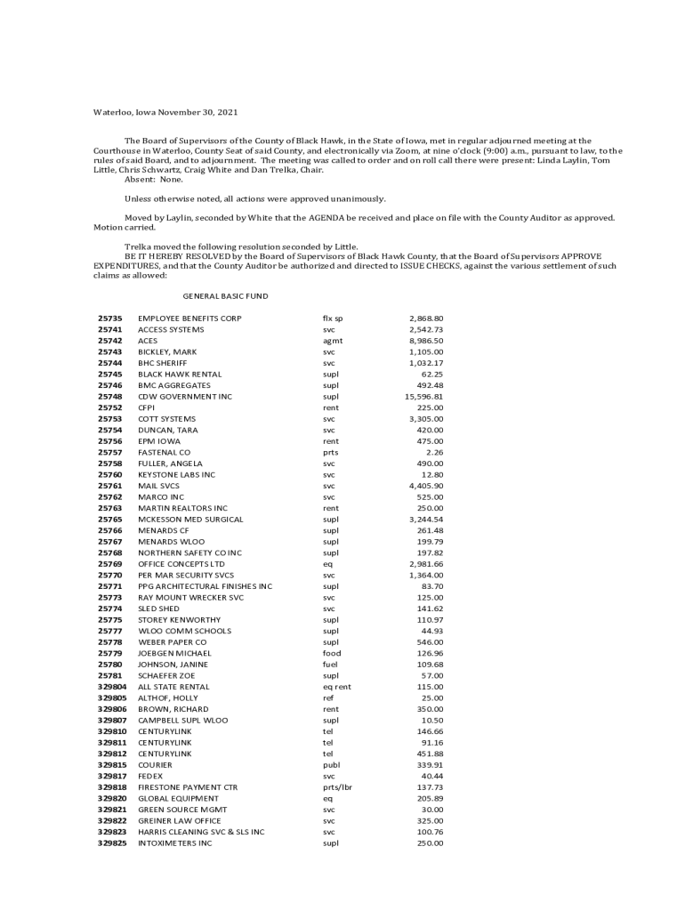 Waterloo, Iowa November 30, 2021, The Board of Supervisors of the County of Black Hawk, in the State of Iowa, met in regular adjourned meeting at the Courthouse in Waterloo, County Seat of said County,