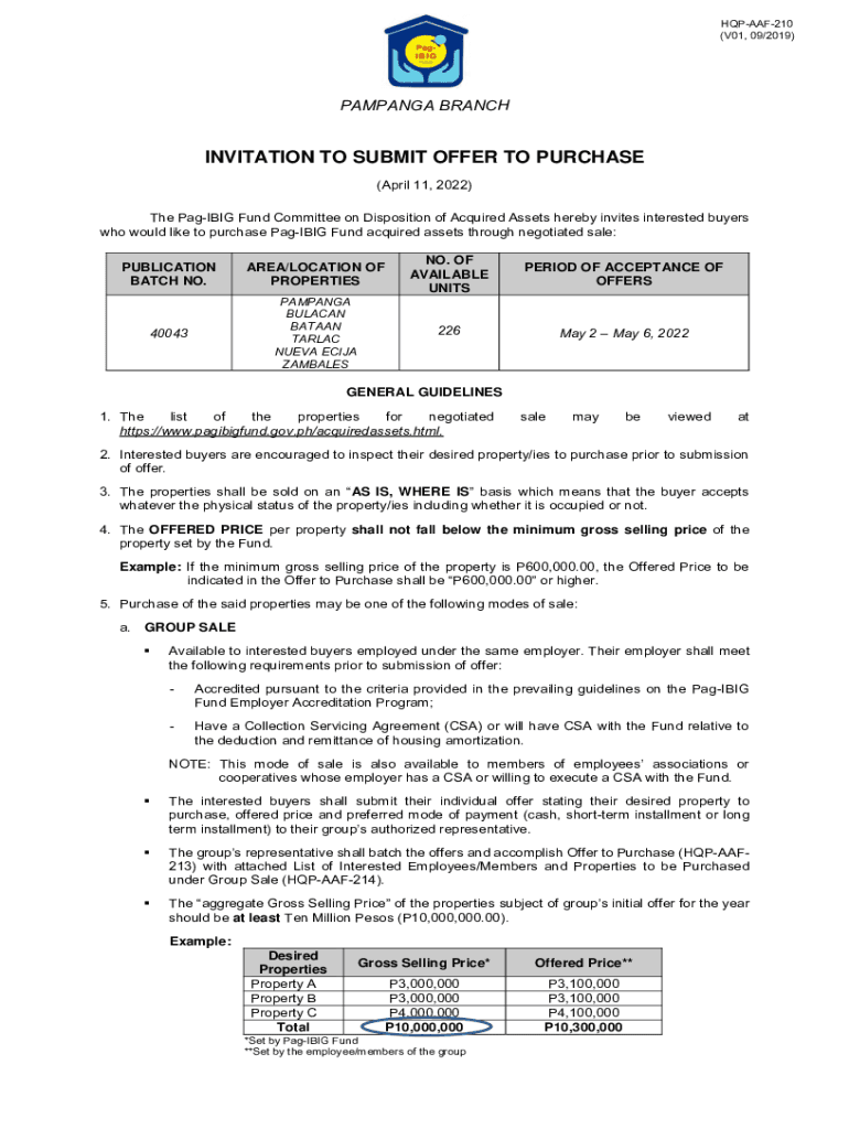 HQPAAF210 (V01, 09/2019)CAMPAIGN BRANCHINVITATION TO SUBMIT OFFER TO PURCHASE (April 11, 2022) The Paging Fund Committee on Disposition of Acquired Assets hereby invites interested buyers who would