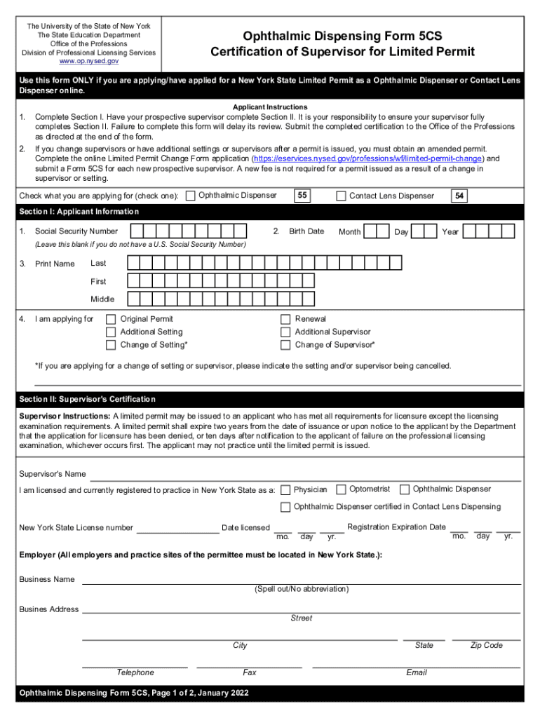 The University of the State of New York The State Education Department Office of the Professions Division of Professional Licensing Services www.op.nysed.govOphthalmic Dispensing Form 5CS Certification