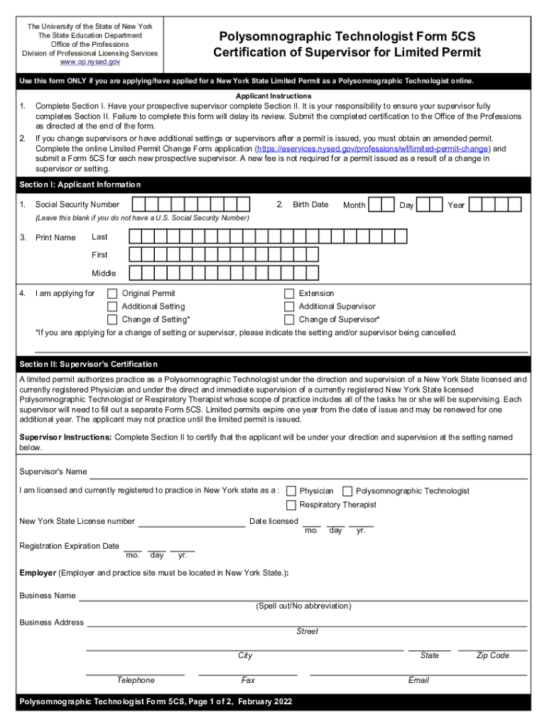 The University of the State of New York The State Education Department Office of the Professions Division of Professional Licensing Services www.op.nysed.govPolysomnographic Technologist Form 5CS