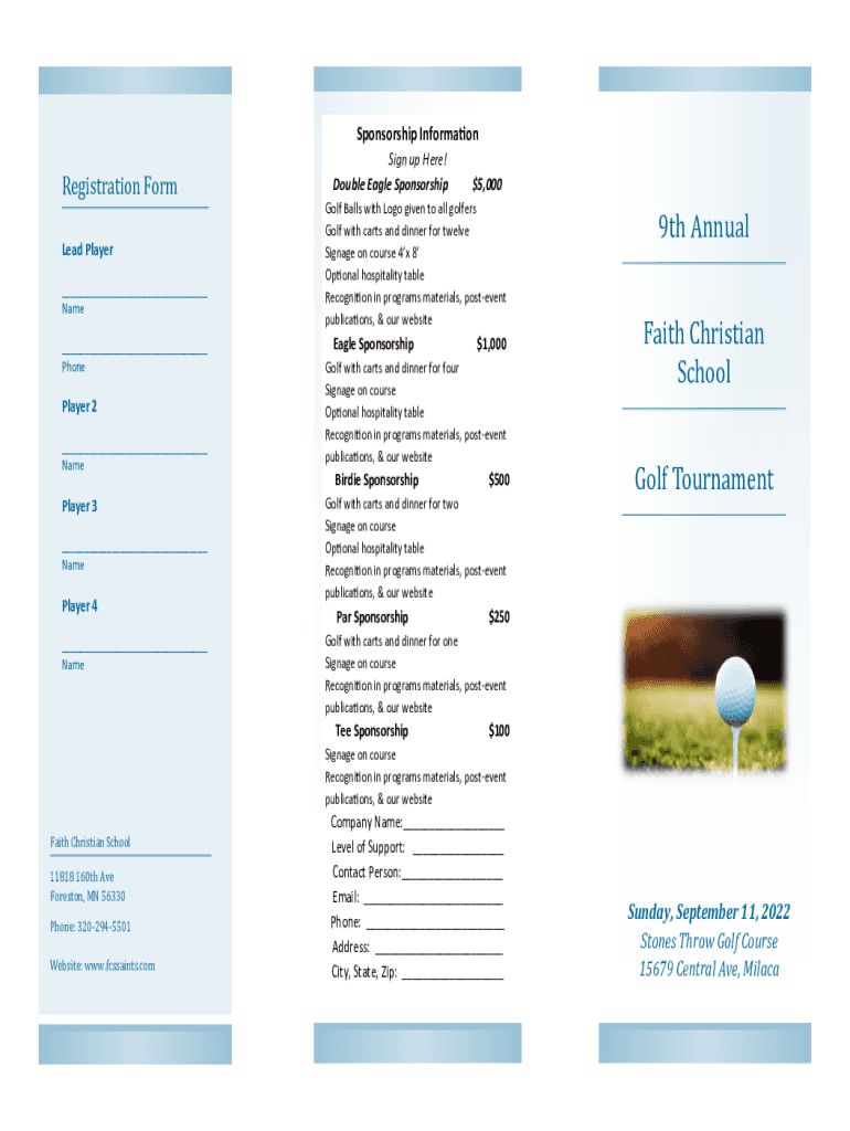 Sponsorship InformationRegistration Form Lead Player ___ Name___ PhonePlayer 2 ___ Nameplate 3 ___ Nameplate 4 ___ Design up Here! Double Eagle Sponsorship$5,000Golf Balls with Logo given to all golfers