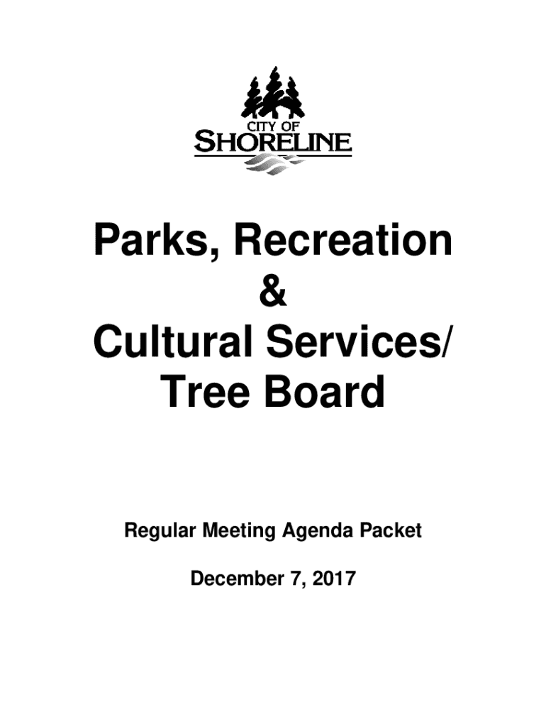 Parks, Recreation & Cultural Services/ Tree Board Regular Meeting Agenda Packet December 7, 2017Parks, Recreation and Cultural Services Board 2018 Meeting Schedule January 257:00 p.m. Shoreline City