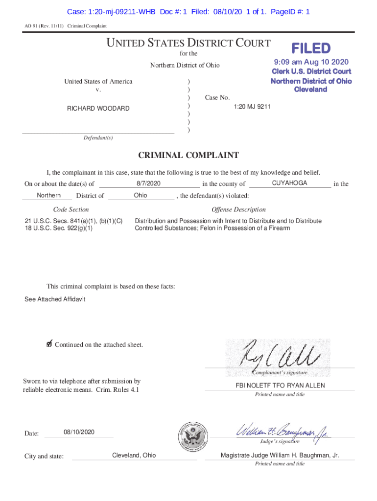 Case: 1:20mj09211WHB Doc #: 1 Filed: 08/10/20 1 of 1. Paged #: 1