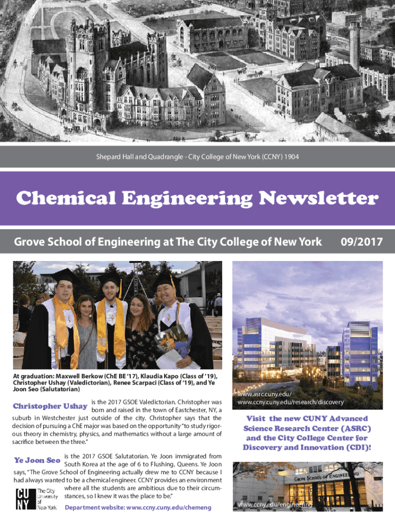 Shepard Hall and Quadrangle City College of New York (CCN) 1904Chemical Engineering Newsletter Grove School of Engineering at The City College of New York At graduation: Maxwell Berk ow (Che BE 17),