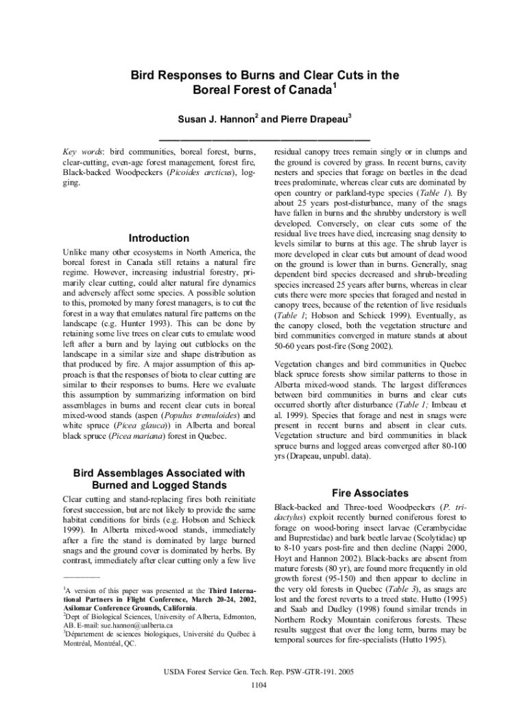 Get the free Bird Responses to Burns and Clear Cuts in the Boreal Forest of ...