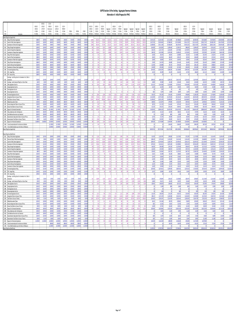 USPTO Section 10 Fee Setting Aggregate Revenue Estimates Alternative 4: Initial Proposal to Place Code ___Description ___Patent Filing Fees (Large Entity) 1011 Filing of Utility Patent Application