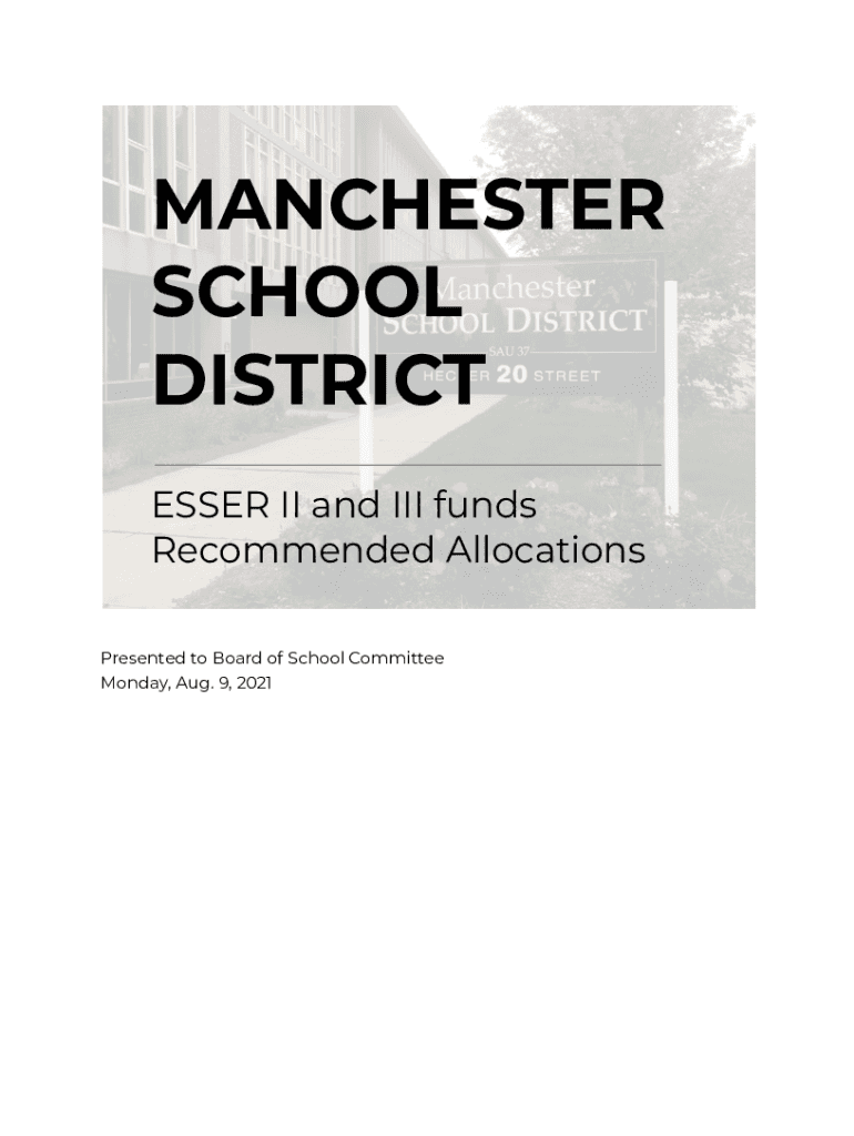 MANCHESTER SCHOOL DISTRICT LESSER II and III funds Recommended Allocations Presented to Board of School Committee Monday, Aug. 9, 20212INDEX Background 2 Decisions 2 LESSER Allocations 3 What these