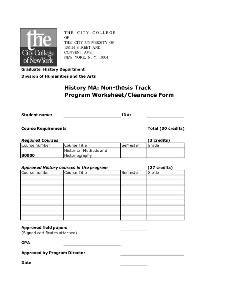 Get the free Non-thesis Track Program Worksheet/Clearance Form