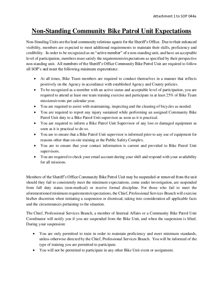 Attachment 1 to SOP 044aNonStanding Community Bike Patrol Unit Expectations Longstanding Units are the lead community relations agents for the Sheriffs Office. Due to their enhanced visibility, members