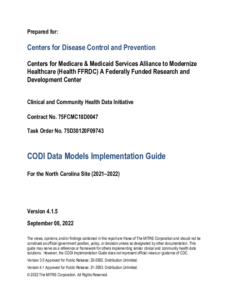 Prepared for:Centers for Disease Control and Prevention Centers for Medicare & Medicaid Services Alliance to Modernize Healthcare (Health FF RDC) A Federally Funded Research and Development Center
