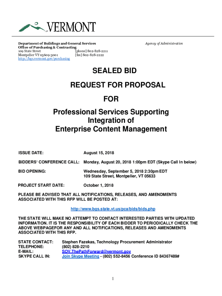 Department of Buildings and General Services Office of Purchasing & Contracting 109 State Street [phone] 8028282211 Montpelier VT 056093001 [fax] 8028282222 http://bgs.vermont.gov/purchasingAgency