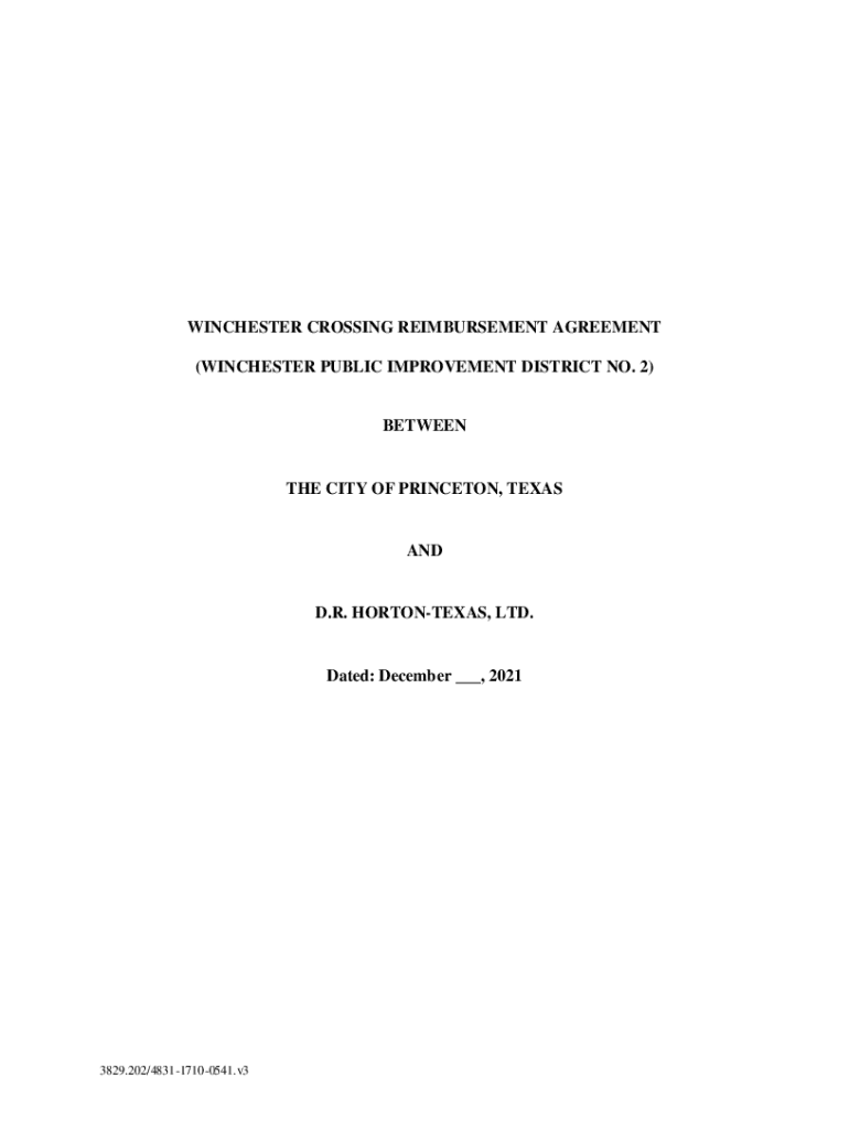 WINCHESTER CROSSING REIMBURSEMENT AGREEMENT (WINCHESTER PUBLIC IMPROVEMENT DISTRICT NO. 2)BETWEEN CITY OF PRINCETON, TEXASANDD. R. HORTONTEXAS, LTD. Dated: December ___, 20213829.202/483117100541.v3TABLE