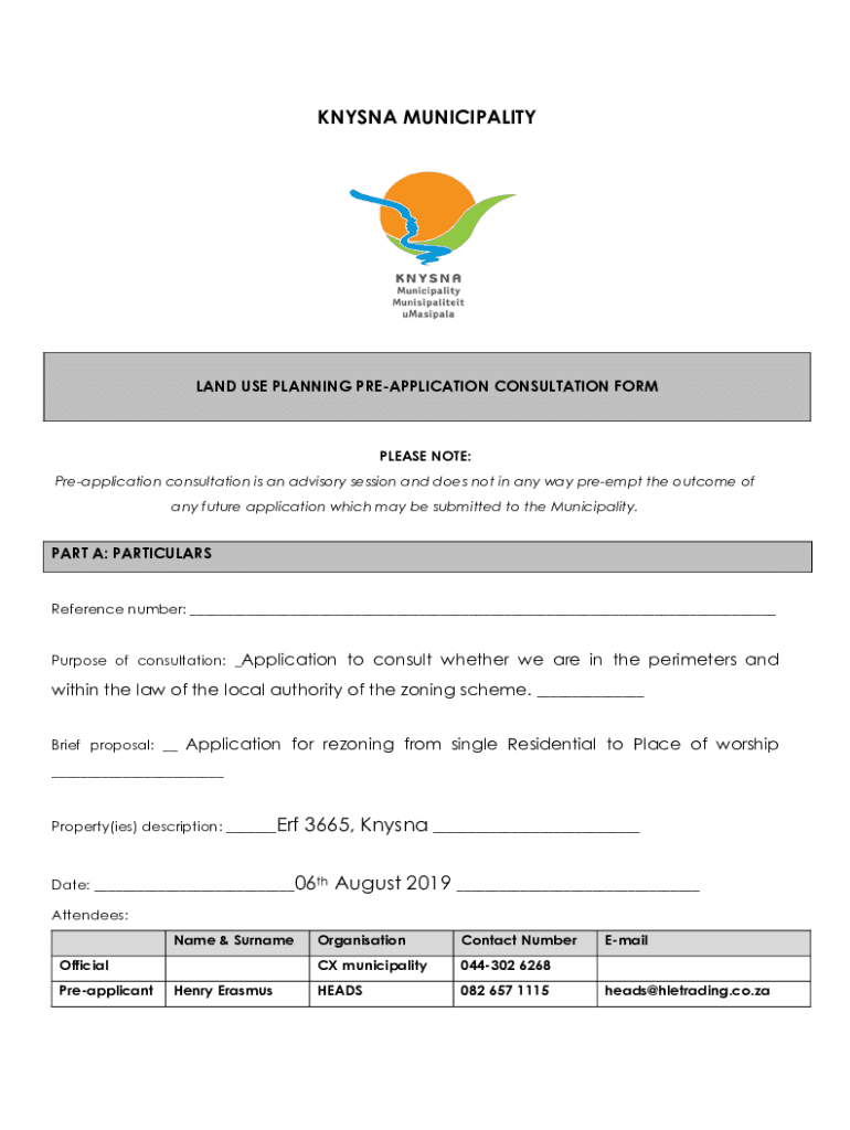 Get the free T1. Pre-consultation application form - knysna.gov.za