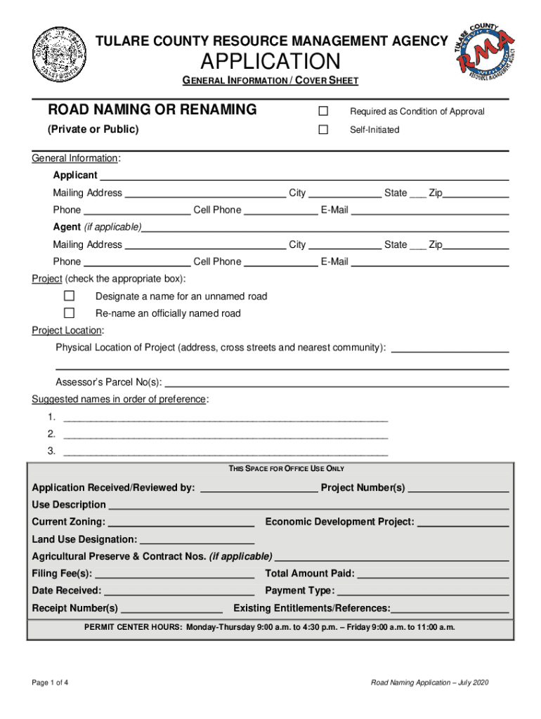 TULARE COUNTY RESOURCE MANAGEMENT AGENCYAPPLICATION