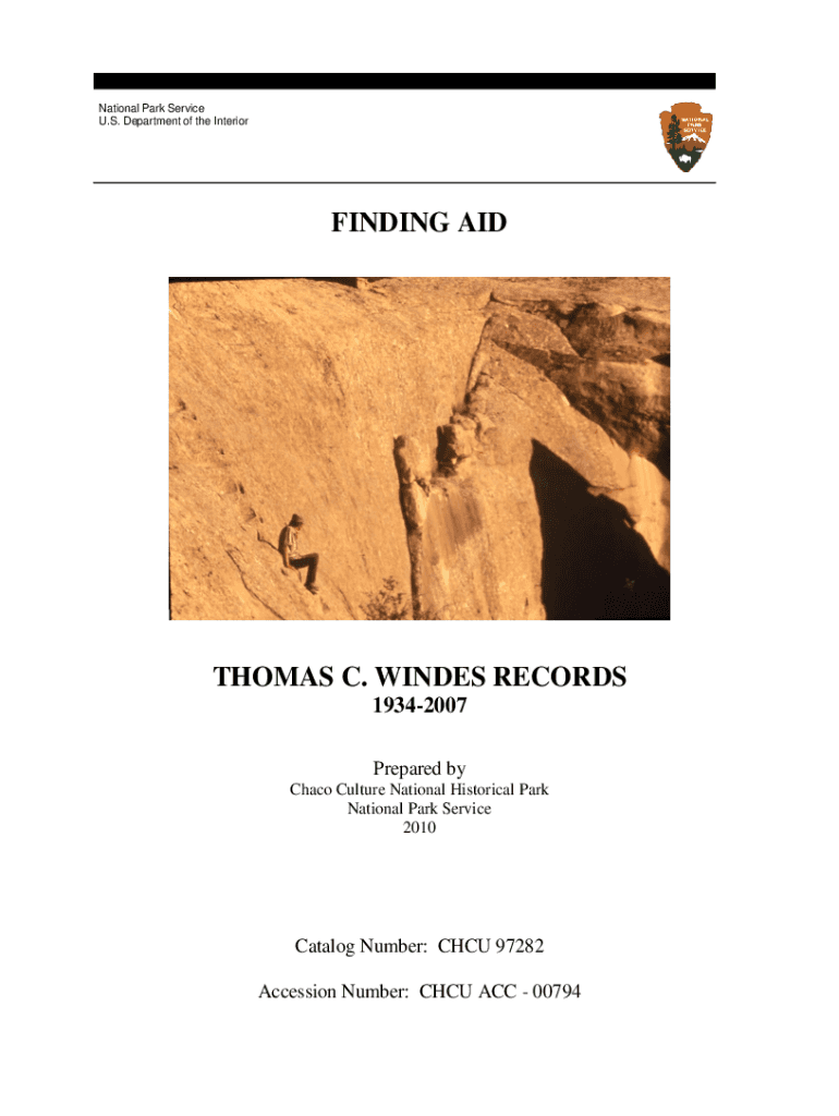 National Park Service U.S. Department of the Interiorizing THOMAS C. WINDS RECORDS 19342007 Prepared by Chico Culture National Historical Park National Park Service 2010Catalog Number: CHOU 97282