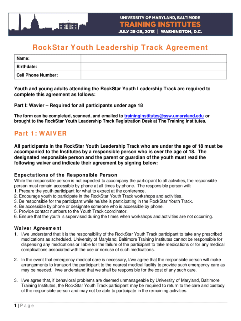 Get the free RockStar Youth Leadership Track Agreement - University of Maryland ...