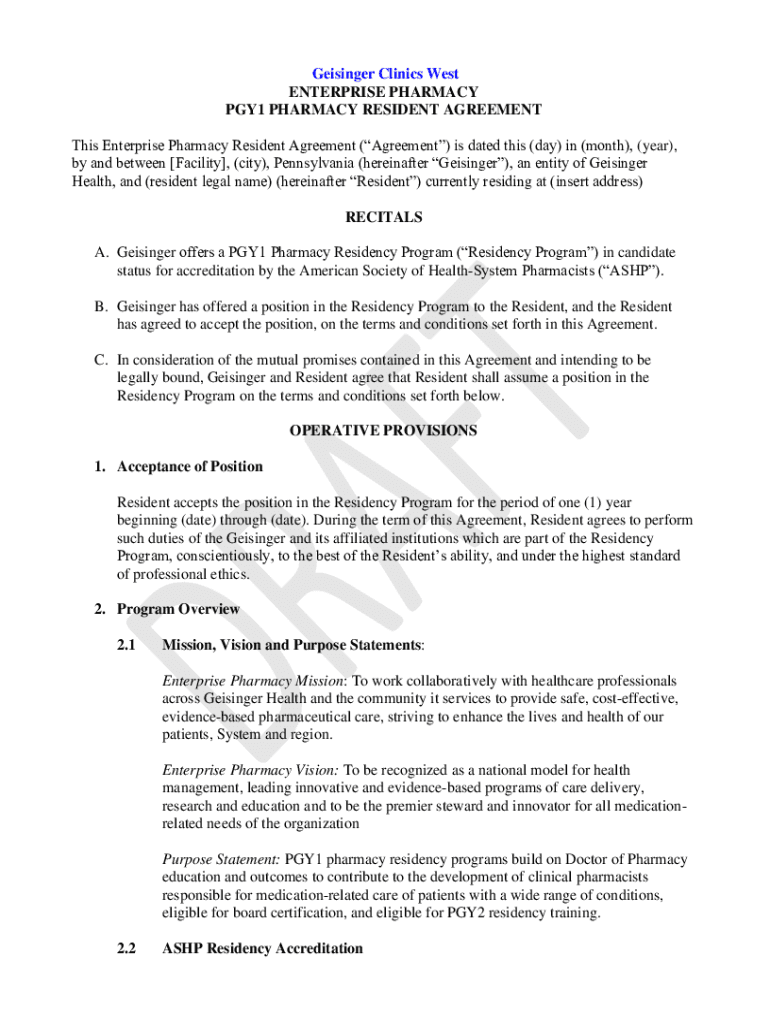 Get the free Geisinger Clinics West - Pharmacy Resident Agreement