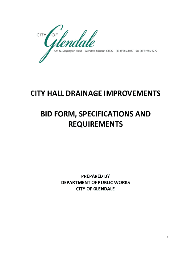 Get the free www.glendalemo.org wp-content uploadsCITY HALL DRAINAGE IMPROVEMENTS BID FORM, SPECI...