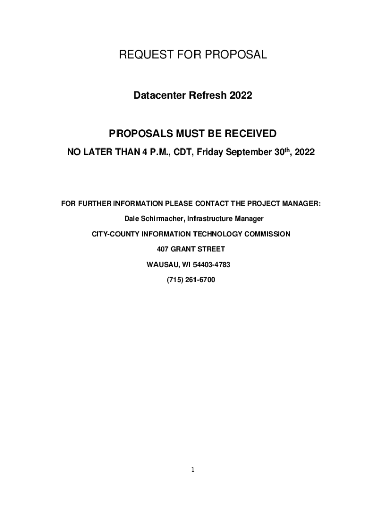 REQUEST FOR PROPOSALDatacenter Refresh 2022PROPOSALS MUST BE RECEIVED NO LATER THAN 4 P.M., CDT, Friday, September 30th, 2022FOR FURTHER INFORMATION PLEASE CONTACT THE PROJECT MANAGER: Dale Schumacher,