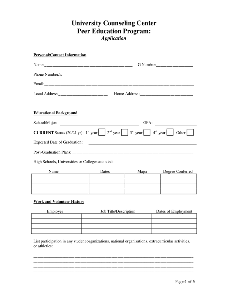 Fill out your university counseling center peer online with pdfFiller!