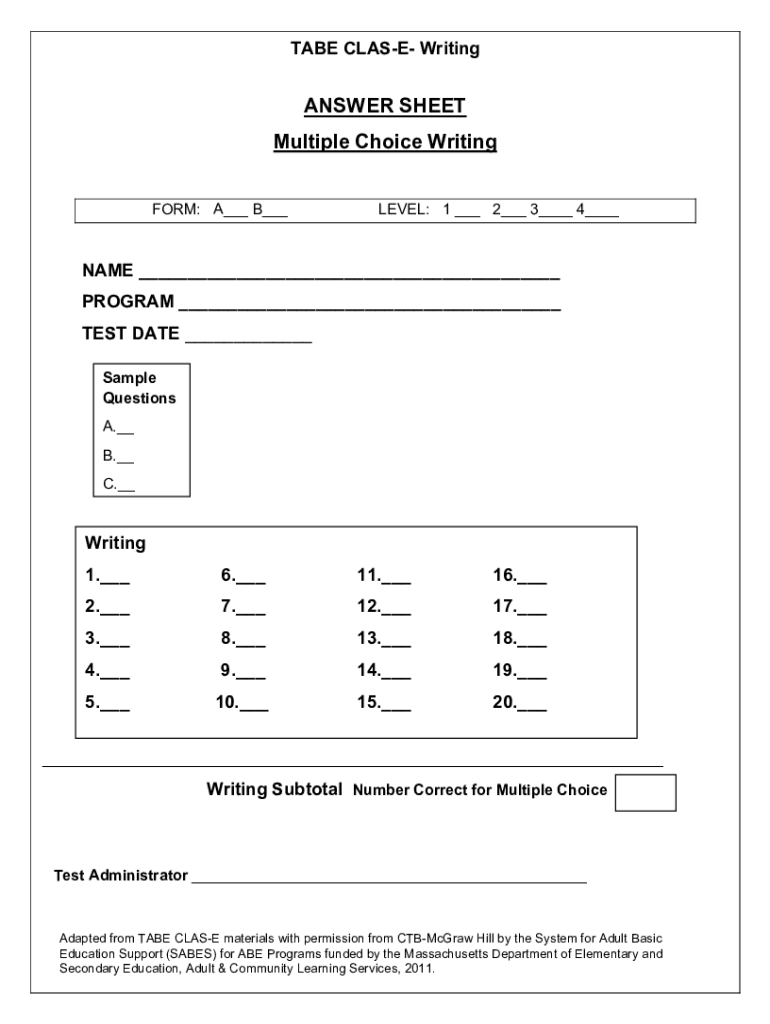 How to fill out adapted-tabe-clas-e-writing-answer-sheet - umass blogs