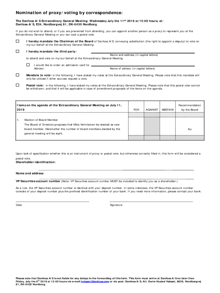 Get the free Nomination of proxy/voting by correspondence - Danfoss