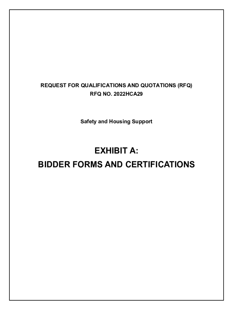 REQUEST FOR QUALIFICATIONS AND QUOTATIONS (RFQ) RFQ NO. 2022HCA29Safety and Housing SupportEXHIBIT A: BIDDER FORMS AND CERTIFICATIONS. BIDDER PROFILE & SUBMITTAL FORM MANDATORY 1. COMPANY INFORMATION:
