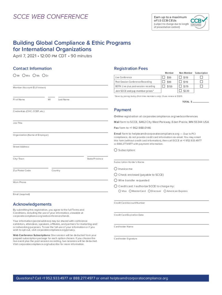 SCC WEB CONFERENCEEarn up to a maximum of 1.5 CCB Zeus (subject to change due to length of presentation content)Building Global Compliance & Ethic Programs for InternationalOrganizations April 7,