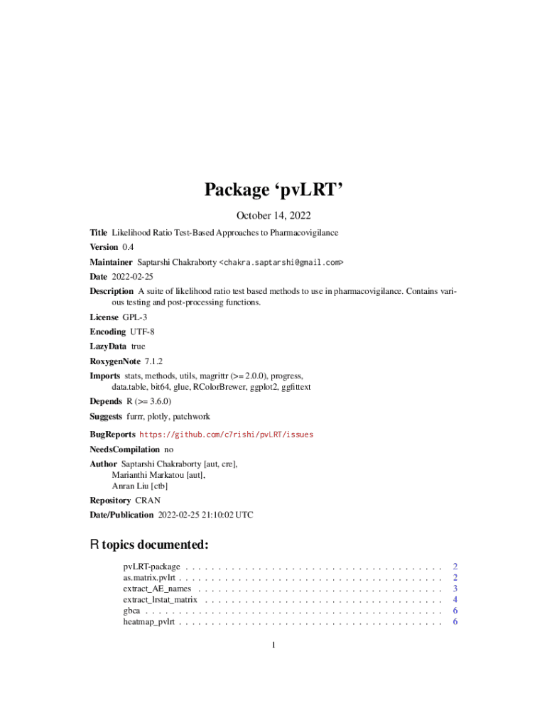 Get the free search.r-project.orgCRANrefmansLikelihood Ratio Test-Based Approaches to Pharmacovig...