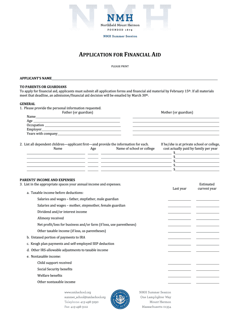 Get the free NMHSS 2015 Financial Aid Form.doc - nmhschool