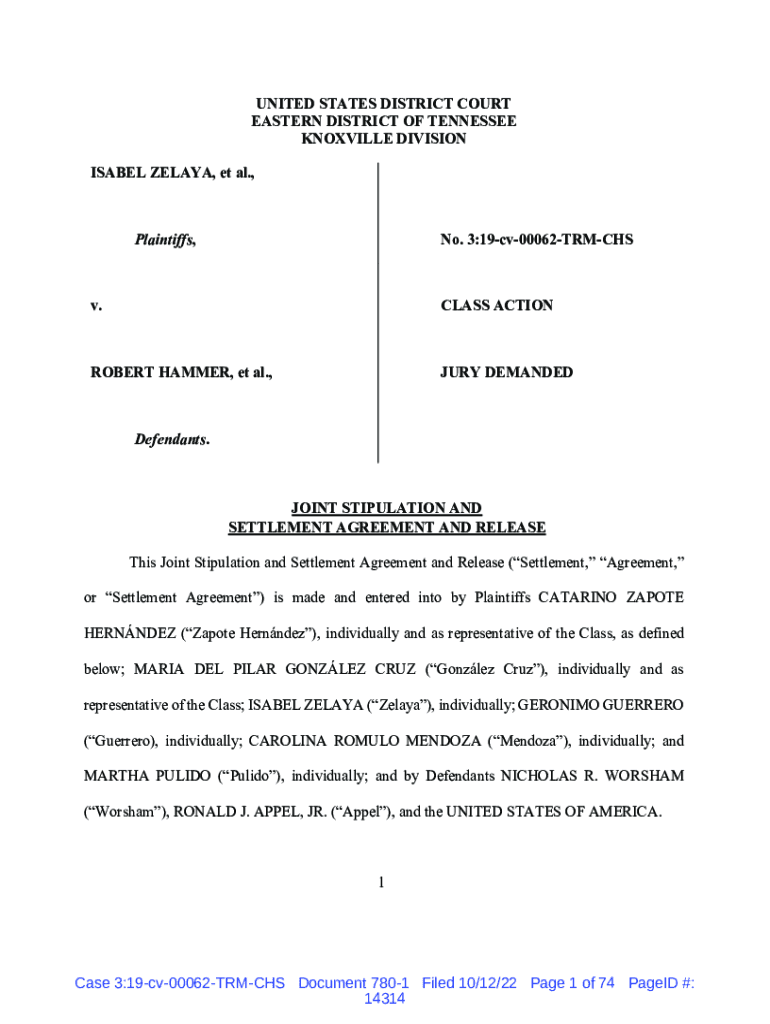 ISABEL CELAYA, et al., Plaintiffs, No. 3:19cv00062TRMCHSv.CLASS ACTIONROBERT HAMMER, et al., JURY DEMANDEDDefendants.