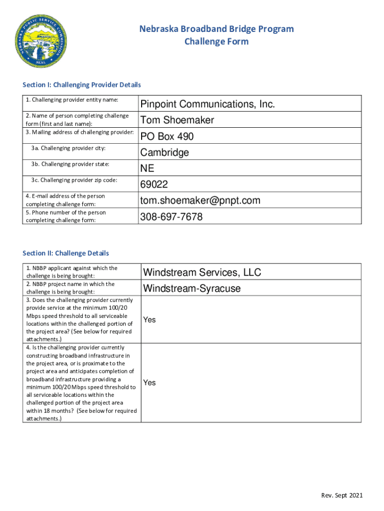 Get the free Nebraska Broadband Bridge Program Challenge Form Pinpoint ... - psc nebraska