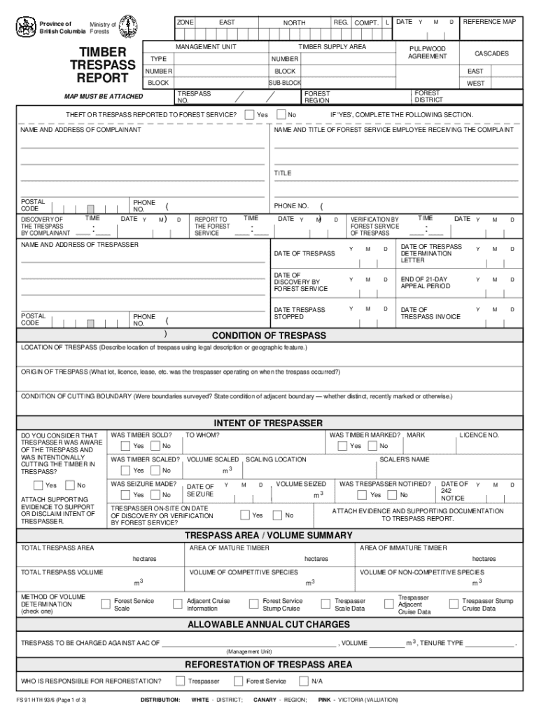 ZONEProvince of Ministry of British Columbia ForestsEASTLDATE TIMBER SUPPLY AREAMANAGEMENT UNLIMBER TRESPASS REPORT REG. COMET.NORTHTYPEMREFERENCE MAPDPULPWOOD AGREEMENTNUMBERCASCADESNUMBERBLOCKEASTBLOCKSUBBLOCKWESTTRESPASS