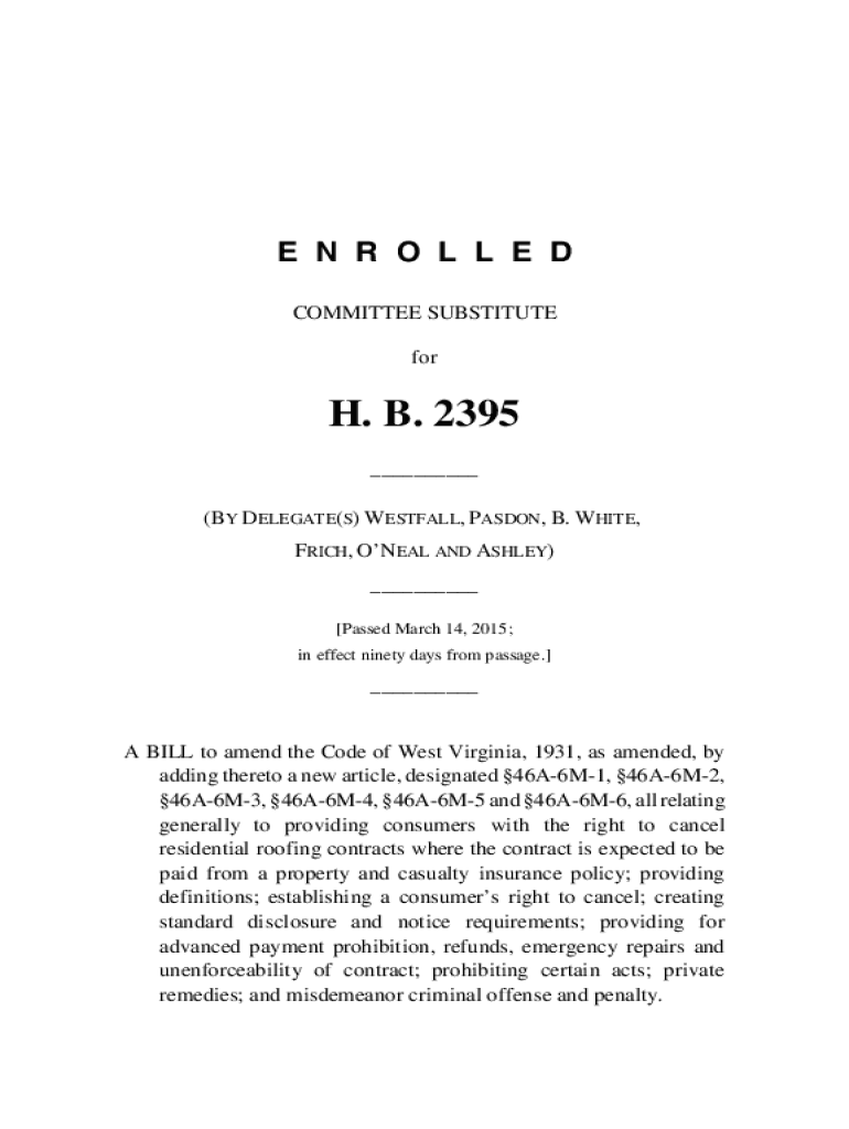 E N R O L L E D COMMITTEE SUBSTITUTE for. B. 2395 ___ (BY DELEGATE(S) WESTDALE, PARDON, B. WHITE, RICH, ONEAL AND ASHLEY) ___ [Passed March 14, 2015; in effect ninety days from passage.]___A BILL