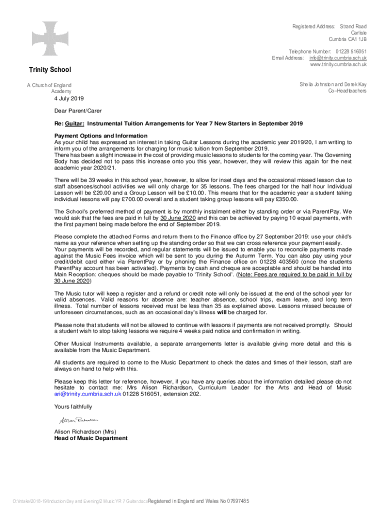 Registered Address: Strand Road Carlisle Cambria CA1 1JBTrinity School A Church of England Academy 4 July 2019Telephone Number: 01228 516051 Email Address: info@trinity.cumbria.sch.uk www.trinity.cumbria.sch.ukSheila