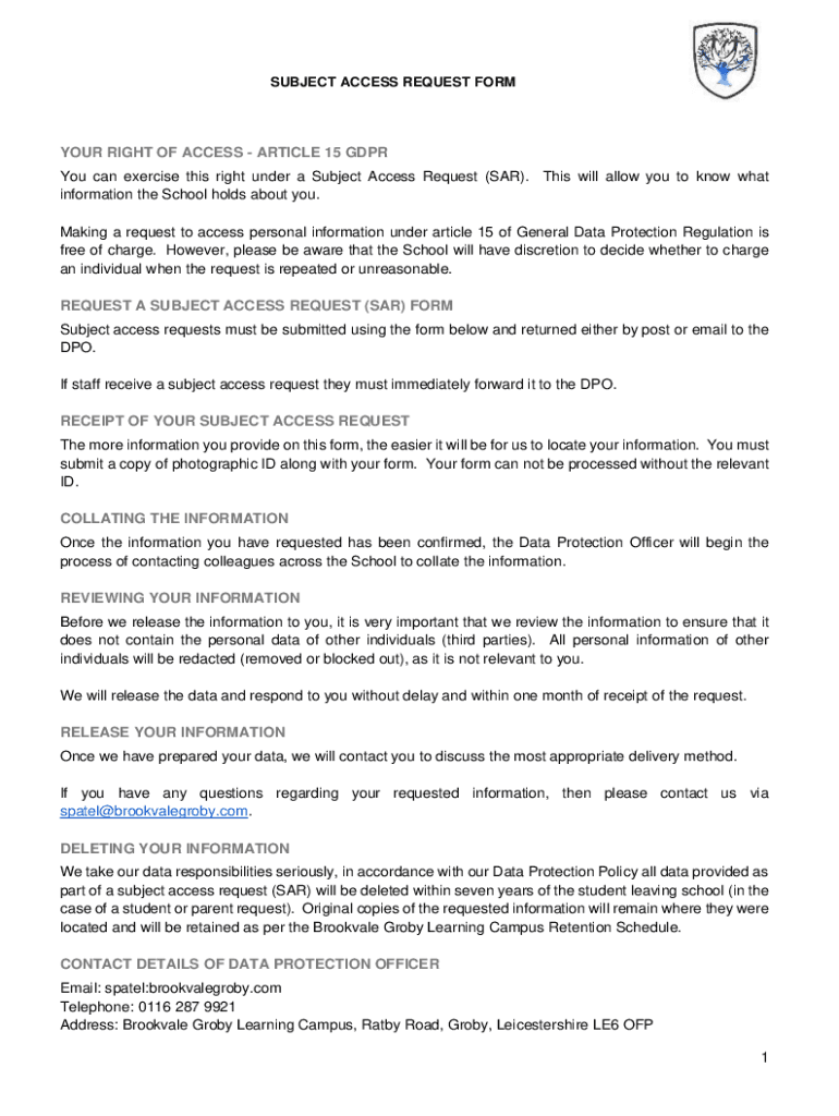 SUBJECT ACCESS REQUEST FORMER RIGHT OF ACCESS ARTICLE 15 GDPR