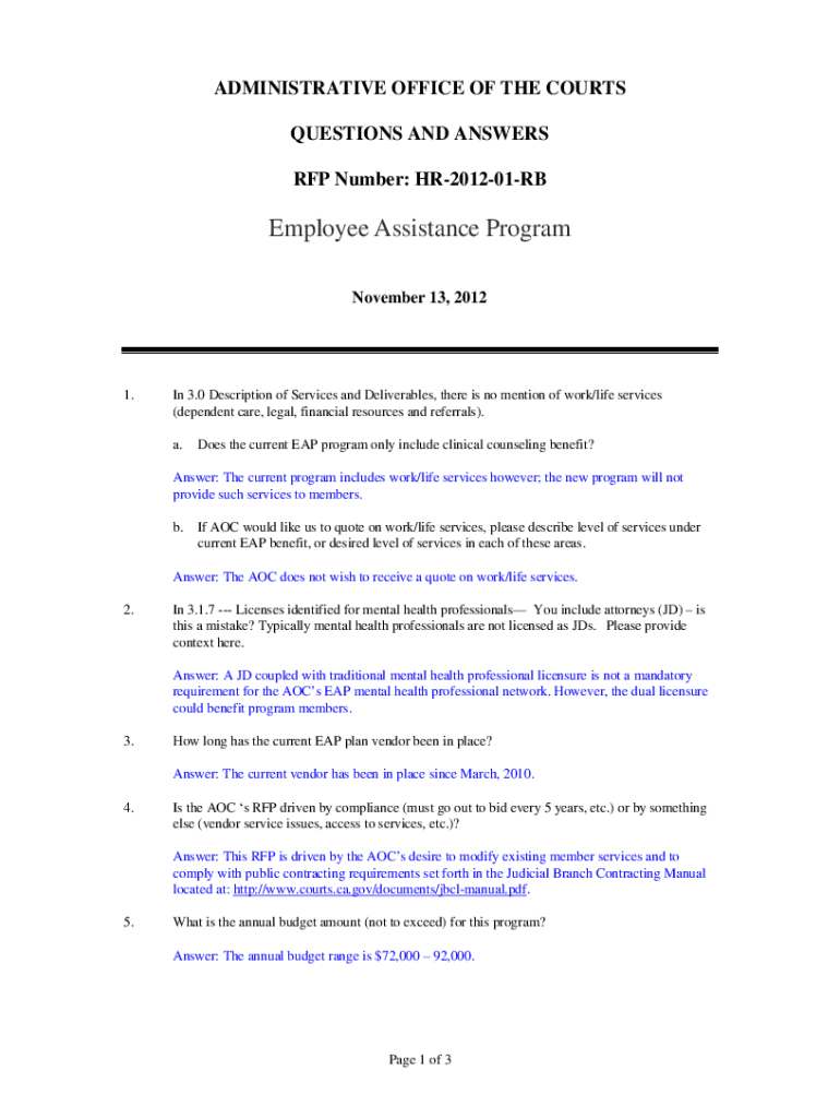 Get the free Employee Assistance Program HR-2012-01-RB - Questions and Answers