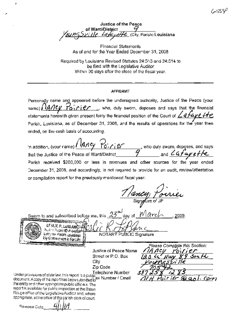 0S^^ Justice o f t h e Peace of Ward/District _2_ OT w an r a / u i s r a c i y island /7^UJ^^5i/l/law M / y ^ / M ^ (City, Parish) Lou Financial Statements As of and for the Year Ended December 3