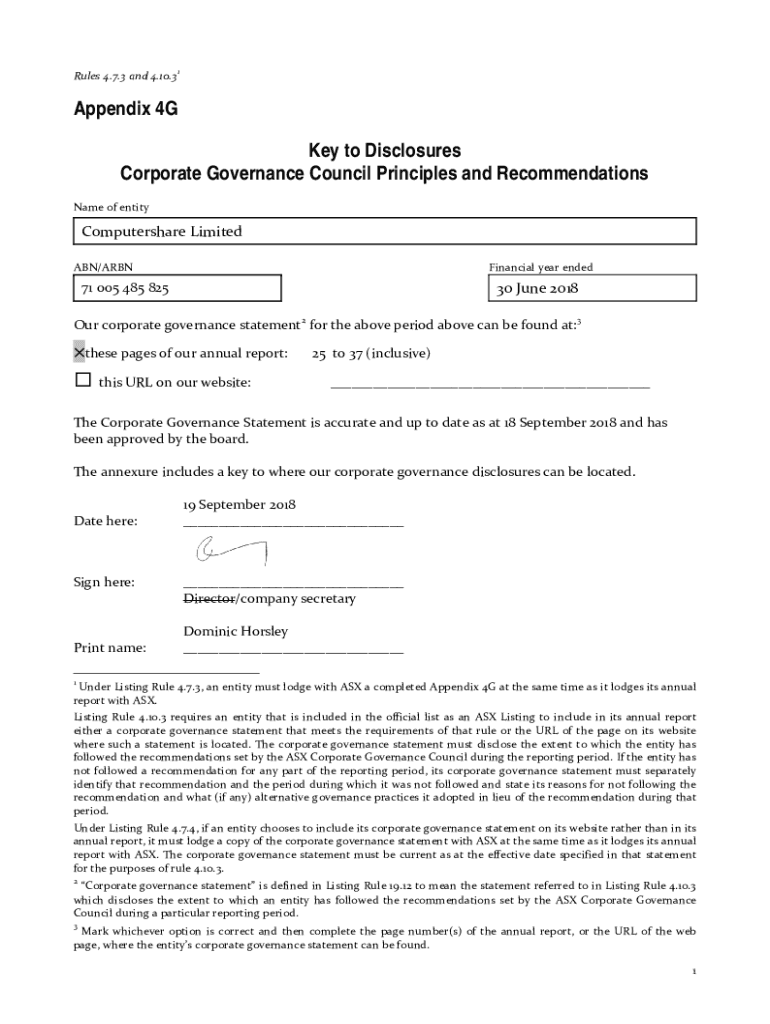 Get the free buddy.comwp-contentuploadsAppendix 4G Key to Disclosures Corporate Governance Counci...