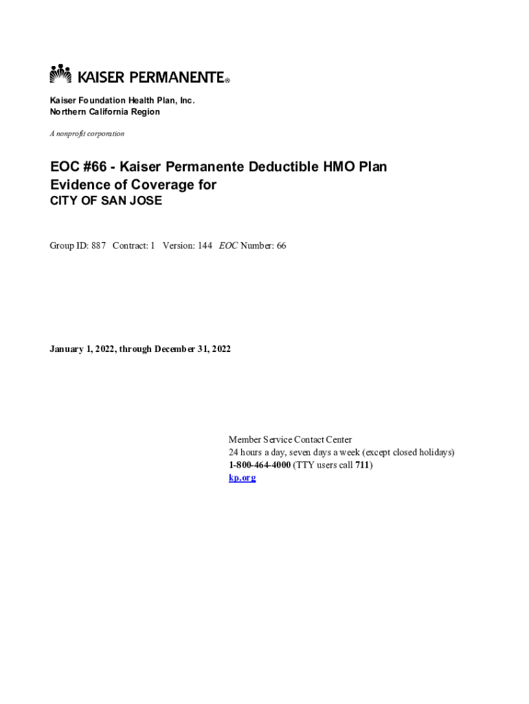 Kaiser Foundation Health Plan, Inc. Northern California Region A nonprofit corporation #66 Kaiser Permanent Deductible HMO Plan Evidence of Coverage for CITY OF SAN Regroup ID: 887 Contract: 1 Version: