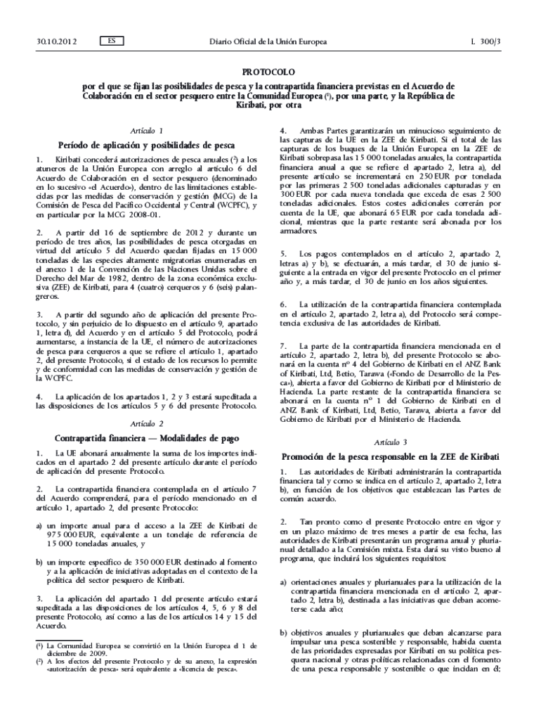 30.10.2012ESDiario Official DE la Unit European 300/3PROTOCOLO