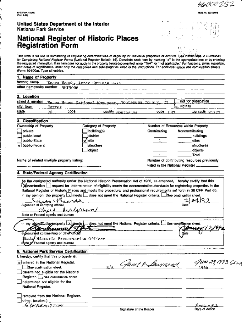 NPS Form 10900 (Rev. 886)0 MB No. 10240018United States Department of the Interior National Park ServiceNational Register of Historic Places Registration Form This form is for use in nominating or