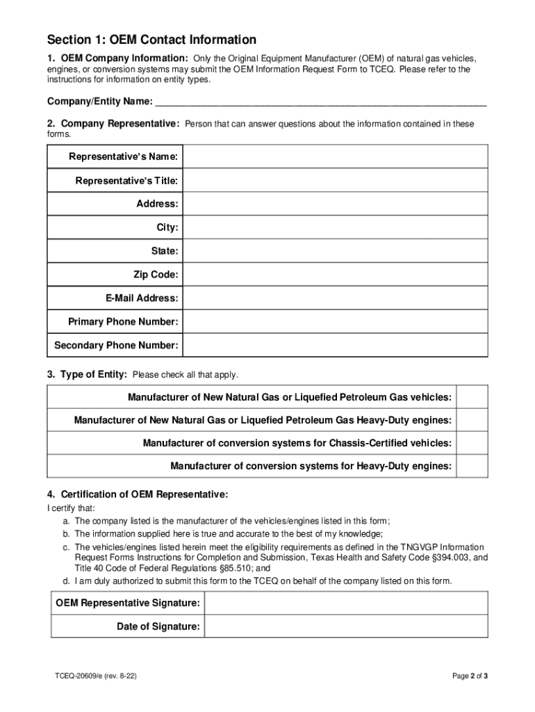Original Equipment Manufacturer (OEM) Information Request Form for ChassisCertified Vehicle Conversion Systems Not Certified to the Current Federal Emissions Standard Texas Natural Gas Vehicle Grant