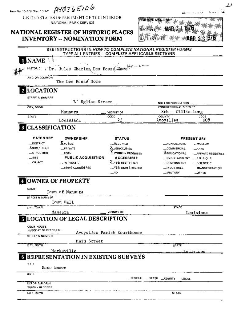 Form No. 10300 (Rev. 107^)Unify I) STATES DEPARTMENT OF THE INTERIOR NATIONAL PARK SERVICENATIONAL REGISTER OF HISTORIC PLACES INVENTORY NOMINATION FORM SEE INSTRUCTIONS IN HO WTO COMPLETE NATIONAL