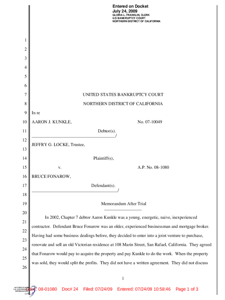 Entered on Docket July 24, 2009, GLORIA L. FRANKLIN, CLERK U.S. BANKRUPTCY COURT NORTHERN DISTRICT OF CALIFORNIA1 2 3 4 5 6 7UNITED STATES BANKRUPTCY COURT8NORTHERN DISTRICT OF CALIFORNIA9In re10AARON