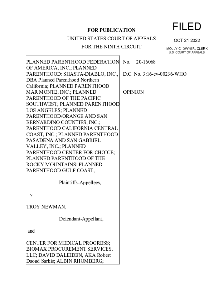 FOR PUBLICATIONFILEDUNITED STATES COURT OF APPEALS 21 2022FOR THE NINTH CIRCUITOUSLY C. DWYER, CLERK U.S. COURT OF APPEALSPLANNED PARENTHOOD FEDERATION No. 2016068 OF AMERICA, INC.; PLANNED PARENTHOOD: