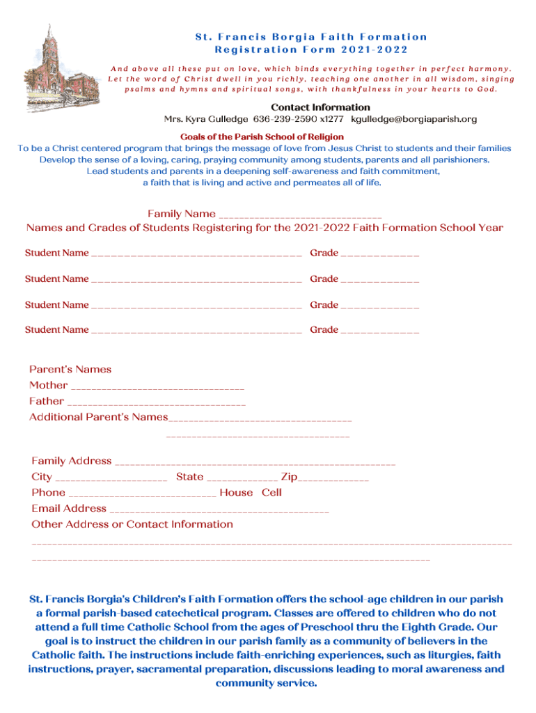 St. Francis Borgia Faith Formation Registration Form 20212022 And above all these put on love, which binds everything together in perfect harmony. Let the word of Christ dwell in you richly, teaching